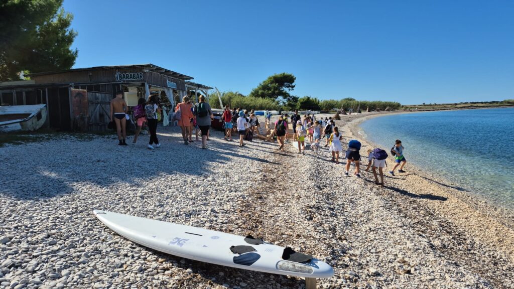 Posebnu pozornost dali smo kraljici podmorja – morskoj cvjetnici posidoniji, čiji nanosi krase obale Unija. Bila je to izvrsna prilika da se učenicima predstavi novi projekt zaštite livada posidonije na otoku Lošinju koji Institut Plavi svijet provodi u suradnji s američkom organizacijom Seacology. Za učenike je na plaži održana radionica putem koje su se upoznali s ovom iznimno važnom biljkom, njenom biologijom i ekologijom te važnosti njenog očuvanja.